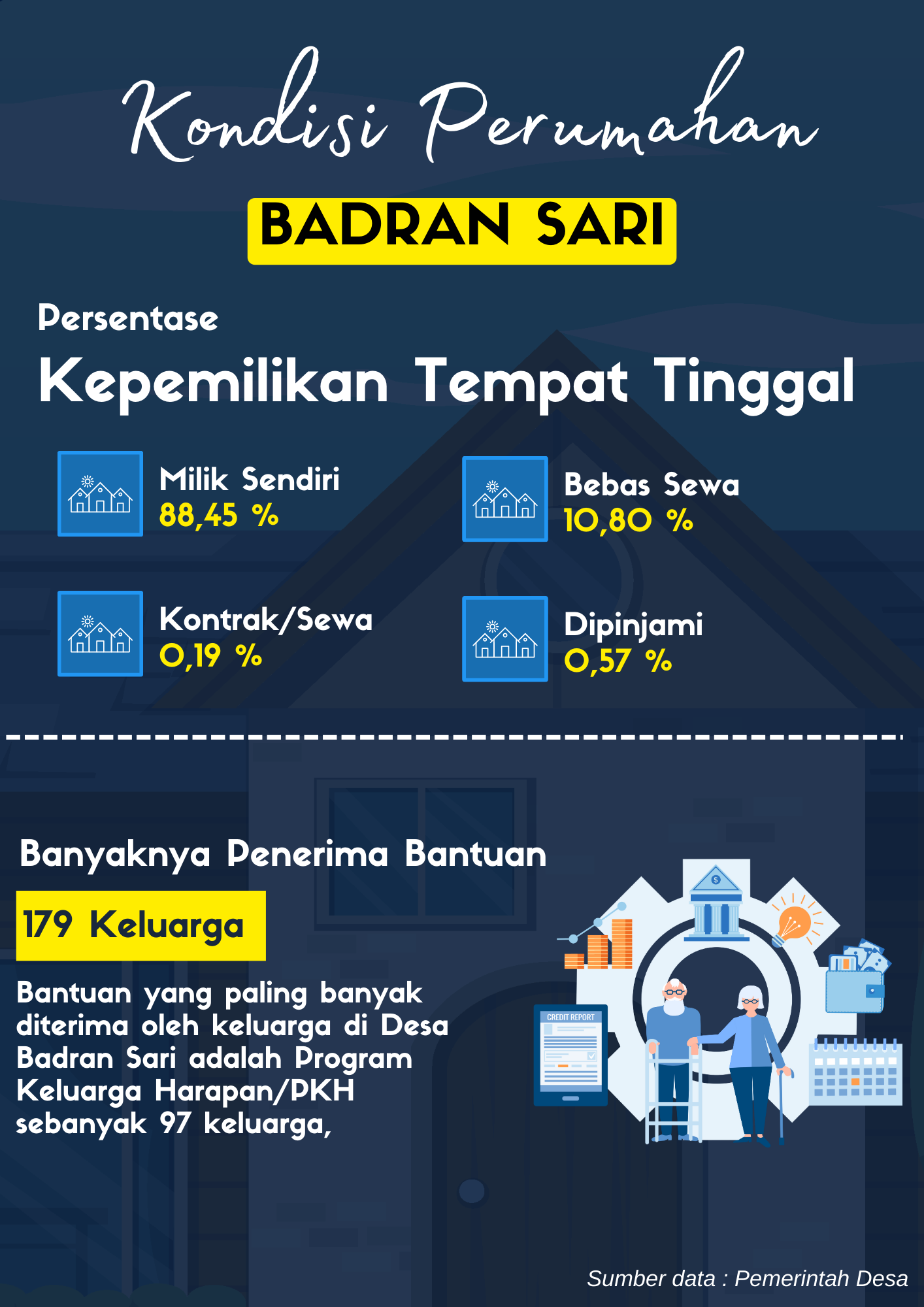 Aset perumahaan adalah perumahan yang dimiliki dan digunakan desa/kelurahan dan atau masyarakat desa/kelurahan.